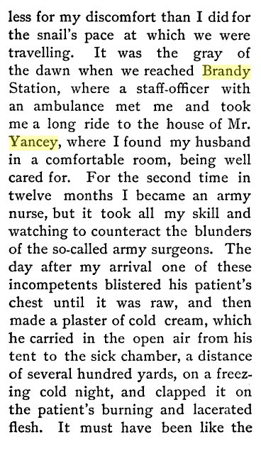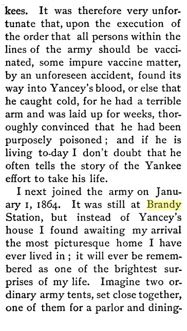 3.5 miles West of Brandy Station is the Yancey Estate mentioned in the record of