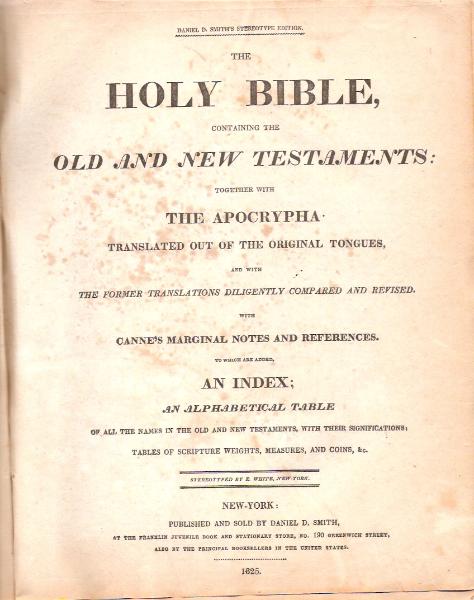 Holy Bible in English; Daniel D. Smith, New York, 1825.