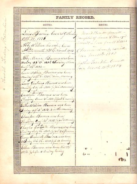 Abby Maria Walden - born at Portsmouth New Hampshire Nov 17th 1783 - married Lewis Barnes Oct 3d