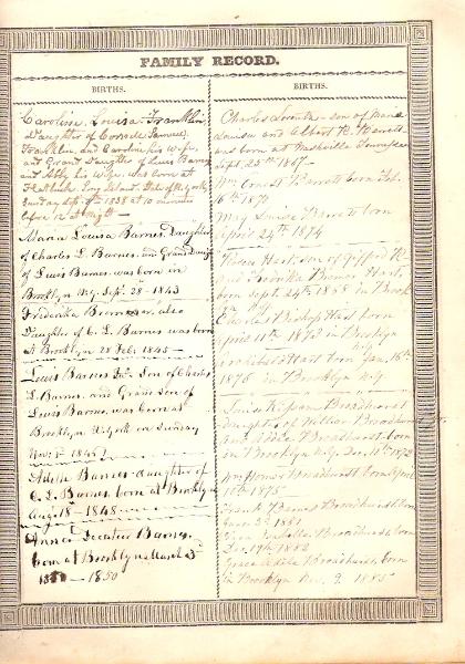 Lewis Barnes Inf Son of Charles L. Barnes was born at Brooklyn N. York on Sunday Nov: 1- 1846