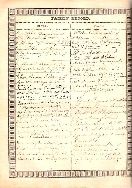 *Ann Louisa born June 4, 1820. She married Charles Lorentz Barnes of Portsmouth, N. H. Dec. 6, 1842