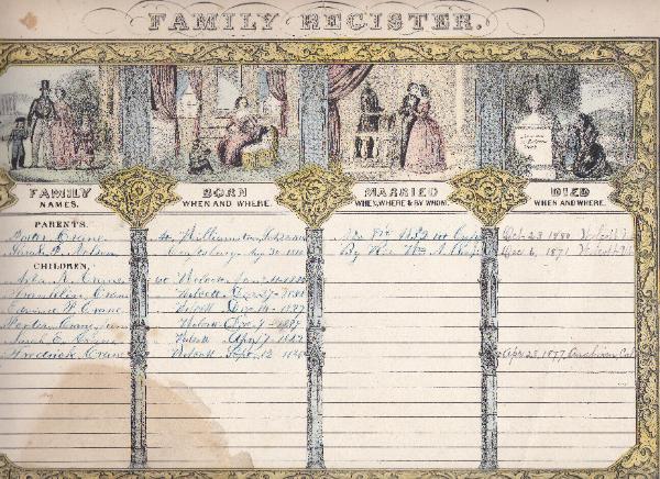 The Family Register of Porter Crane and his wife Sarah P. Nelson.