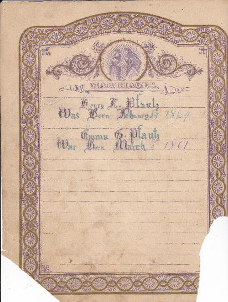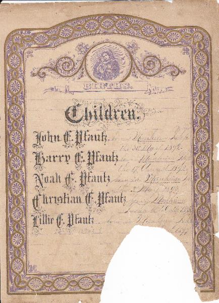 The Family Bible of Henry K. Pfautz and Emma Eichelberger of