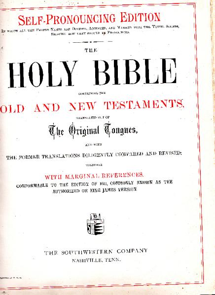 Family Bible in English, The Southwestern Company, Nashville, Tennessee, no date.
