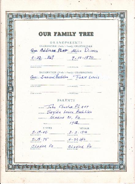 The Family Bible of George Stanley Platt and Shirley G. Conner, his wife, of Rimersburg,