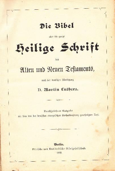 Holy Bible in German; Berlin, 1909.