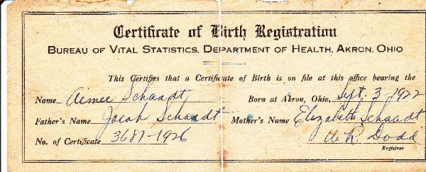 Aimee Schaadt born Sept 3-1922.