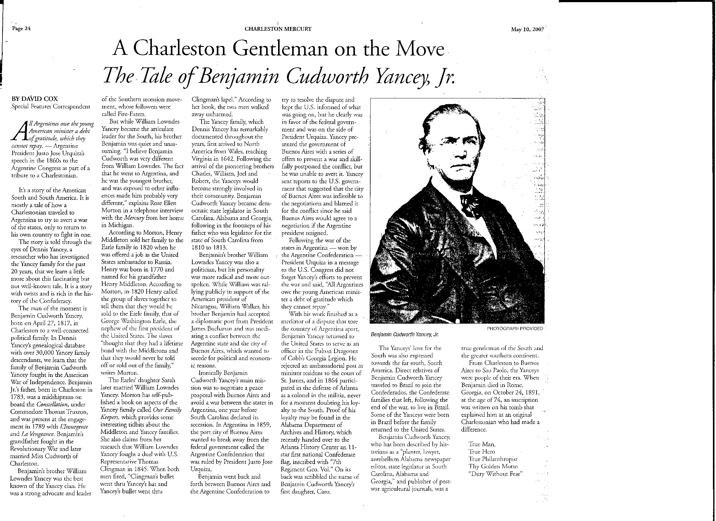Below - Charleston Mercury Story by David Cox - davedcox@yahoo.com