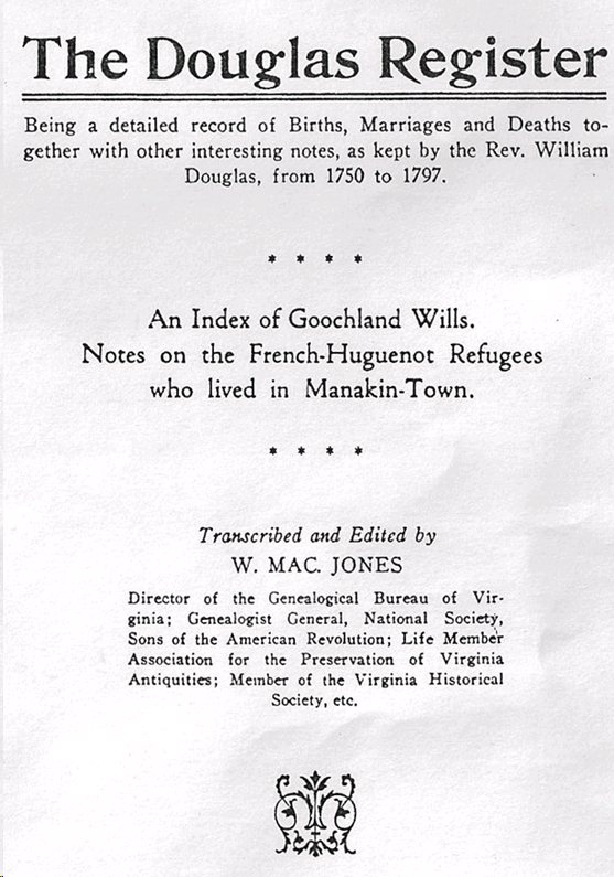 Also in the volume is information concerning the French Huguenots who settled the site of "Manakintown" - very near to where early Yanceys lived. Never have I seen the Yancey name show up on any list of French Protestant of Manakintown - but the Yanceys did intermarry or associate with families like Dumas, Mullins, Dabney and others.