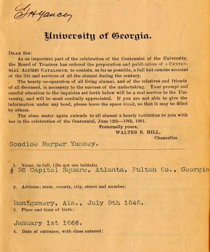 of Alabama, 1861-62; University of Georgia, 1863 and 1865-66; and took a course