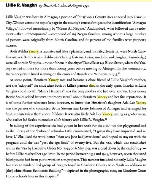 adopted daughter of William & Henrietta Yancey of Pittsylvania County, Virginia