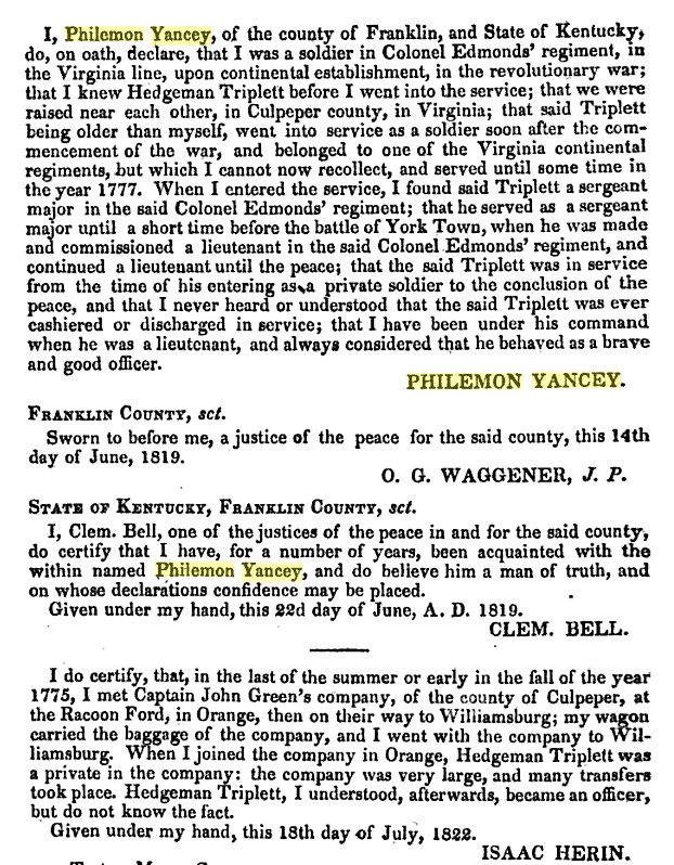 volunteers. He emigrated from Culpeper County, Va., to Franklin County, Ky.,