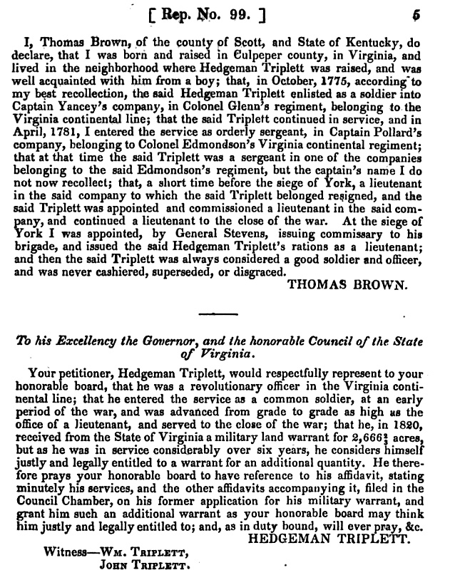 Hedgeman Triplett was born in Culpeper County, Va., but when a boy removed to