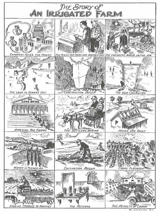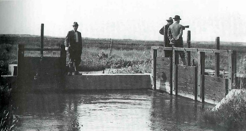 Control Gates along the newly built canals were used to control the flow and distribution of water from the Snake River