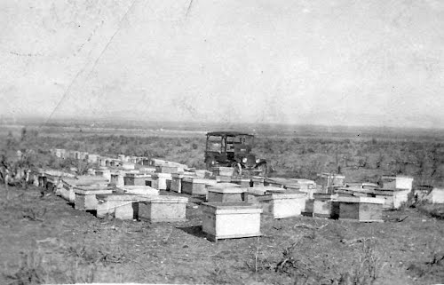 Hives of Bees - in the Idaho area - used to produce "clover honey" - from the